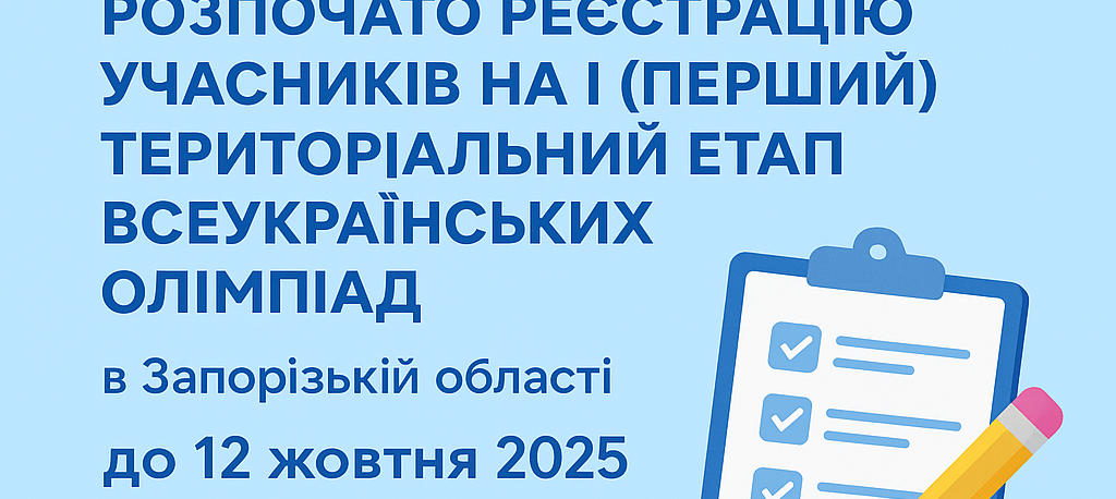 Розпочато реєстрацію учасників І (першого) територіального етапуВсеукраїнських учнівських олімпіад у 2025/2026 навчальному році