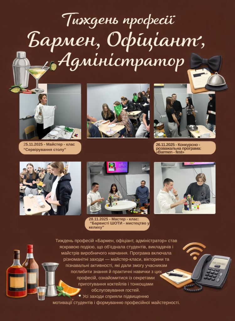 Тиждень з професій "Бармен", "Офіціант", "Адміністратор"